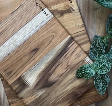 Agrega un toque extra al pedir un entablado. Nuestras tablas de madera natural hechas a mano por David Lee, vienen de 35 cm x 25 cm y son perfectas para darle un toque único a tus próximos arreglos de mesa.