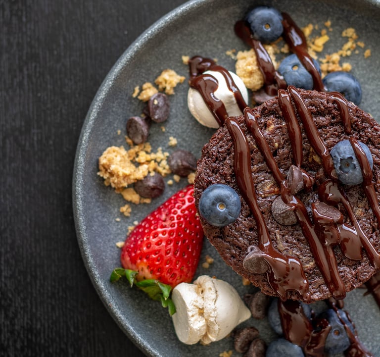 Para los amantes del chocolate amargo. Bocados de brownies de cheescake hechos con chocolate al 85%.